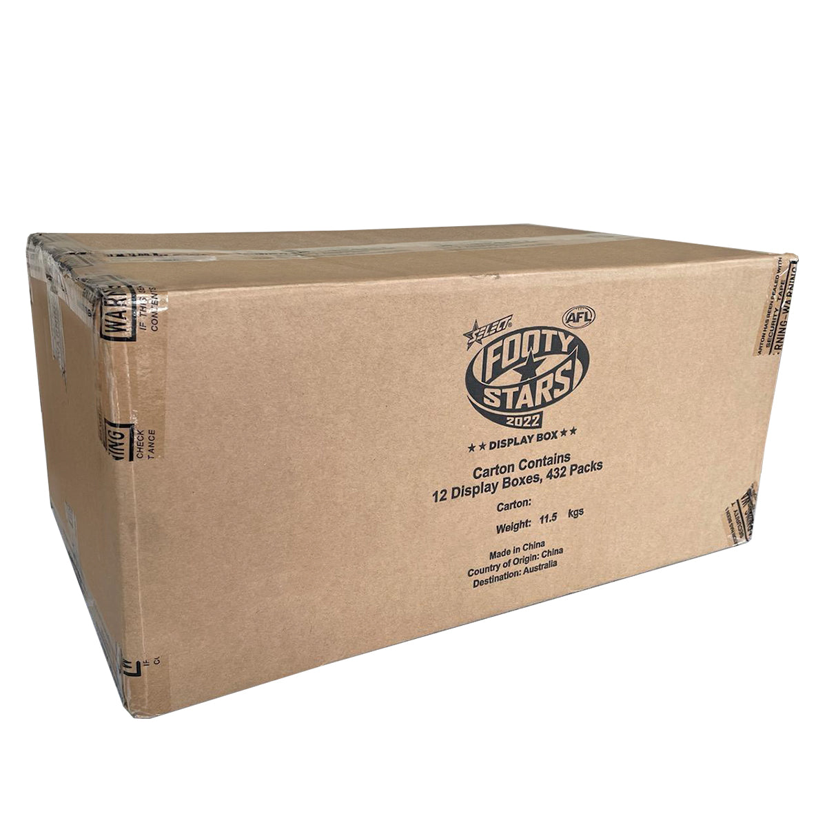 This product is a sealed 2022 Footy Stars Case of 12 boxes, each containing 36 packs of 9 cards.