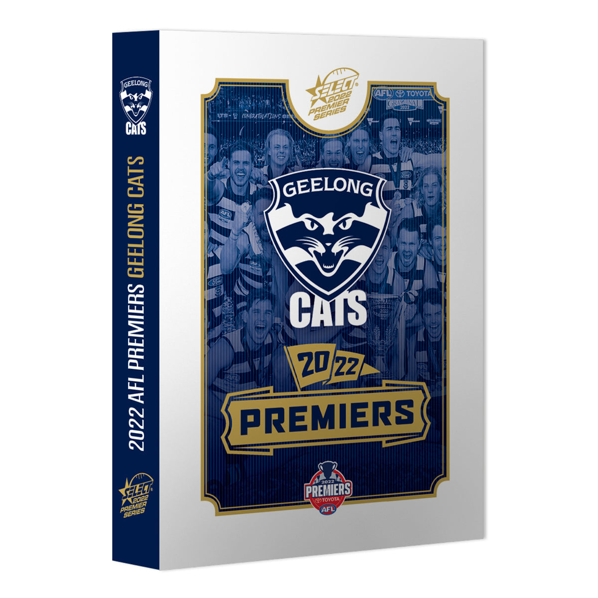 The Geelong Cats Limited Edition Premiers boxed set is a 25 card set commemorating the 2022 Grand Final winners!