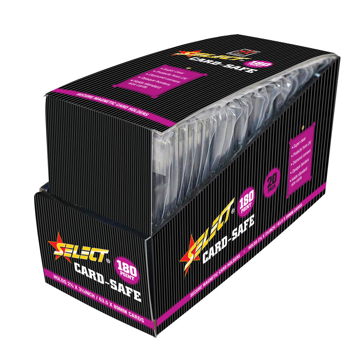 Select's new "Card-Safe", part of our Card Armour range, are secure magnetic one touch holders designed for long term safe storage and display for your premium cards. This version can hold standard cards up to 180pt in thickness.